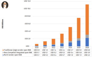 - Market growth and development, trends and buying behavior: Appledore Research’s Market Outlook with predictions for size, growth and makeup of the Open RAN market through 2026