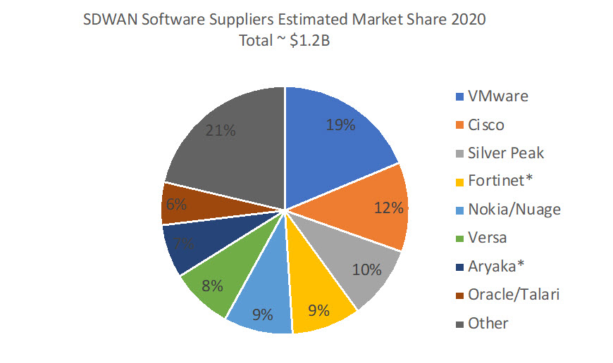 As Appledore, we focus on the “S” of SDWAN – software. We believe that software offers the best opportunity to create new value, differentiators and experiences. We estimate that in 2020, some $1.2B of the total market (about 25% of it) was spend on SDWAN software.