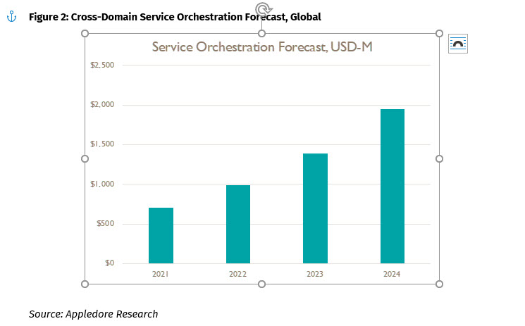 The market for this form of orchestration is both growing and evolving rapidly. Vendors have invested and innovated significantly over the last two years to address the new requirements, and CSPs have increasingly realized that automation is a business requirement, not a technical feature. We estimate this market will grow from $509m in 2021 to $1.9bn in 2024.