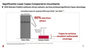 Rakuten estimates that is has delivered more-or-less nationwide population coverage at just 20% of the capex of existing mobile operators in Japan.