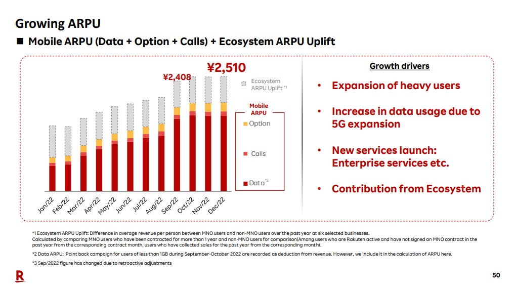 Enterprise is an increasingly important segment. The Rakuten Mobile Business Plan was launched in Jan 2023, with 600+ customers.