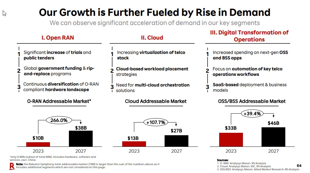 As an internet company, high growth and scalability are what define the mission: Amin wants 40% growth for 2023, to make Rakuten Symphony a billion-dollar revenue company within two years, and do for (to?) telecom what AWS has done for (to?) enterprise IT.