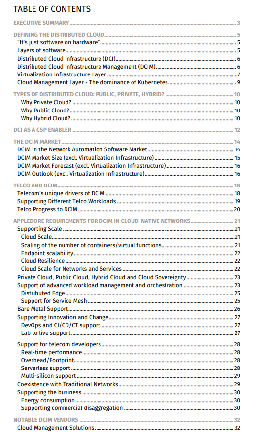 In this comprehensive 30+ page Market Outlook, Appledore looks at the key foundation for this cloud-based future, the distributed cloud infrastructure (DCI). DCI is the foundational layer of Appledore’s NAS taxonomy, on which the cloud network functions will run, and on which the operational processes of the telco will be automated.