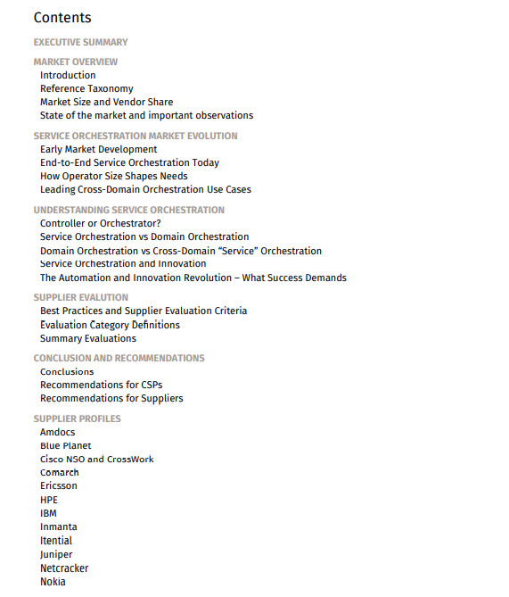 This detailed report is essential reading for CSPs and vendors with an interest in cross-domain orchestration. Scroll down for the Table of Contents.