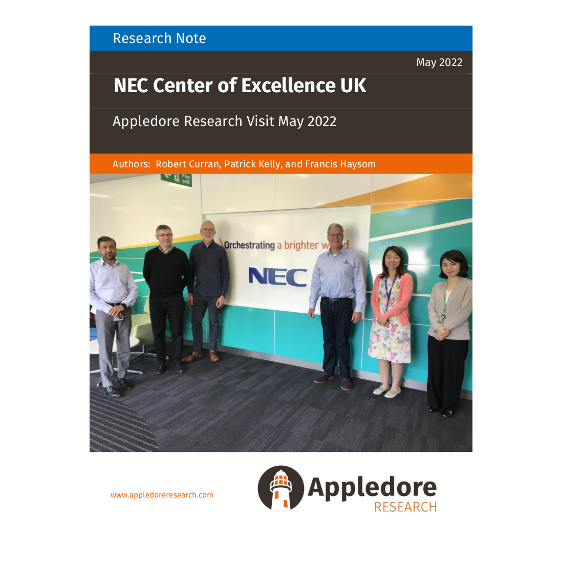 Appledore Research visited the NEC Open RAN Center of Excellence in London on May 12, 2022.