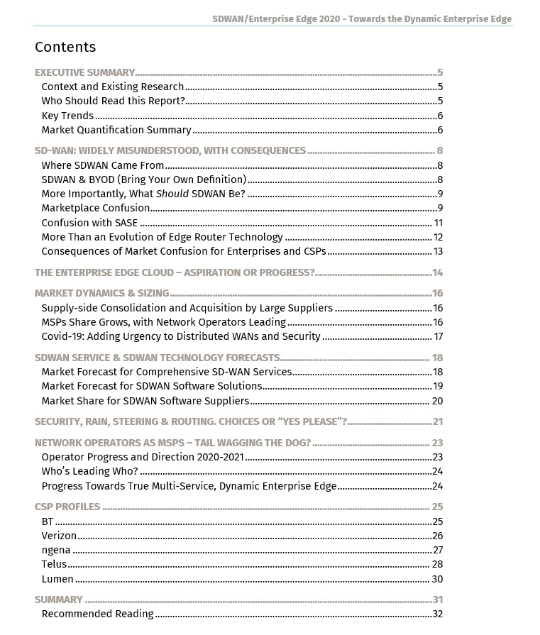 - CSPs: “Head of Enterprise Business” (or similar), who want to understand trends and potential particularly in regard to standalone SD-WAN for customers vs Managed Services offer
